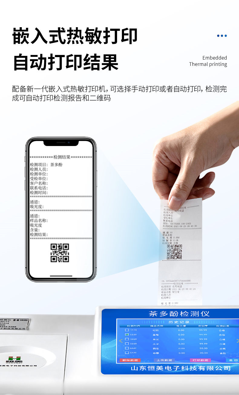 5、配備新一代嵌入式熱敏打印機(jī),可選擇手動(dòng)打印或者自動(dòng)打印,檢測(cè)完成可自動(dòng)打印檢測(cè)報(bào)告和二維碼。
