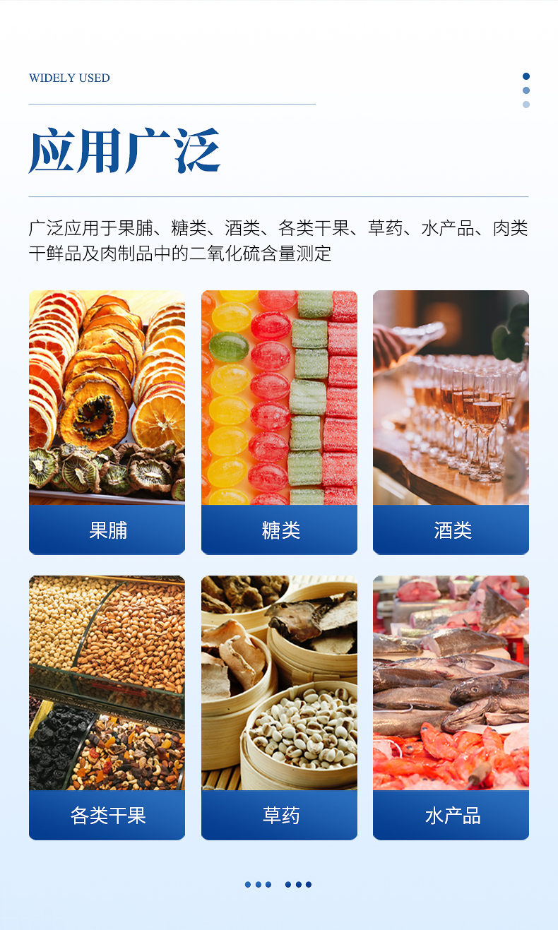 HM-R12二氧化硫測定儀采用比色方法符合《GB 5009.34-2022 食品安全國家標(biāo)準(zhǔn) 食品中二氧化硫的測定》二氧化硫檢測儀廣泛應(yīng)用于果脯、糖類、酒類、各類干果、草藥、水產(chǎn)品、肉類干鮮品及肉制品中的二氧化硫含量測定。
