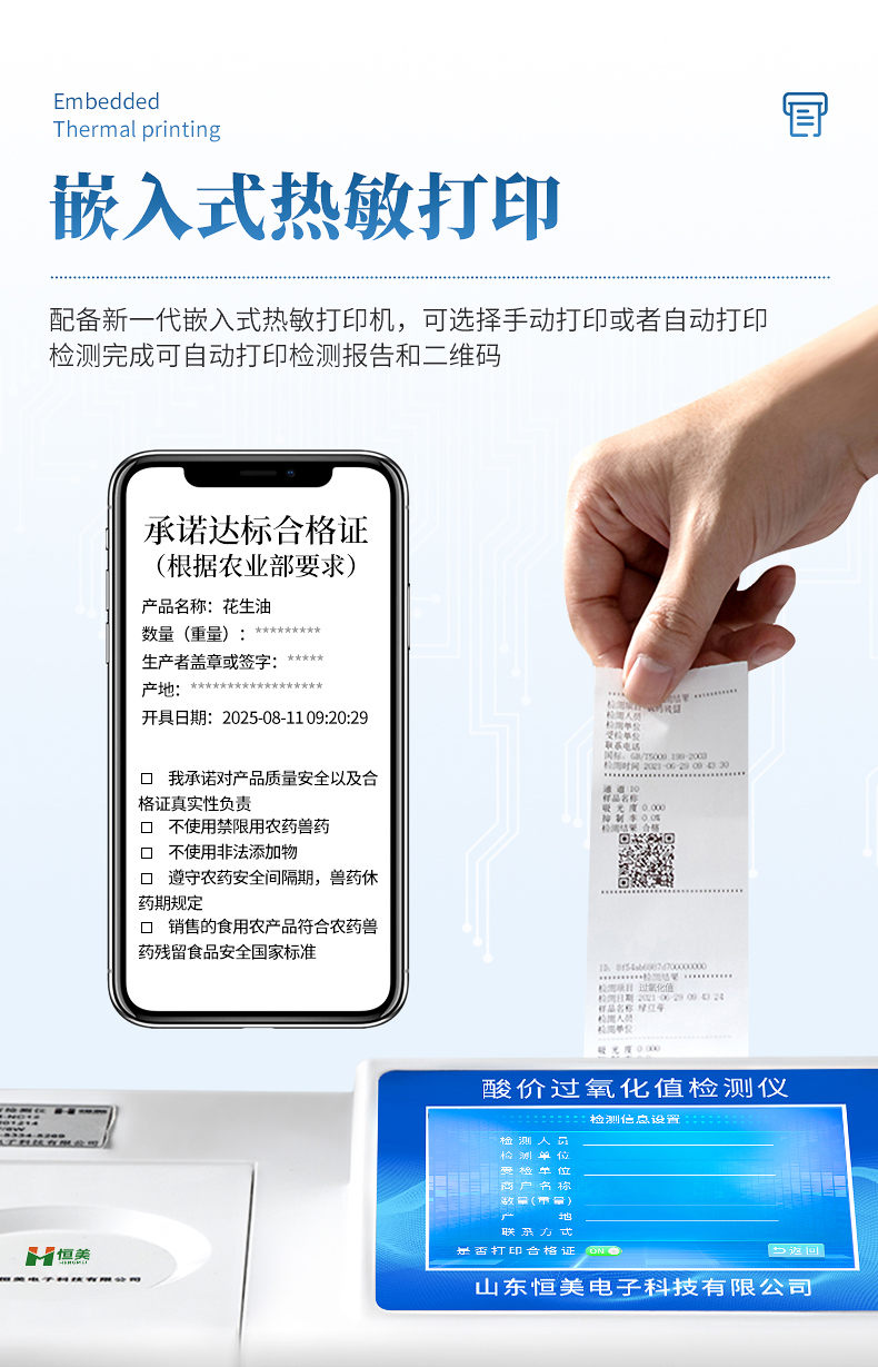 6、配備新一代嵌入式熱敏打印機(jī),可選擇手動(dòng)打印或者自動(dòng)打印,檢測完成可自動(dòng)打印檢測報(bào)告和二維碼。