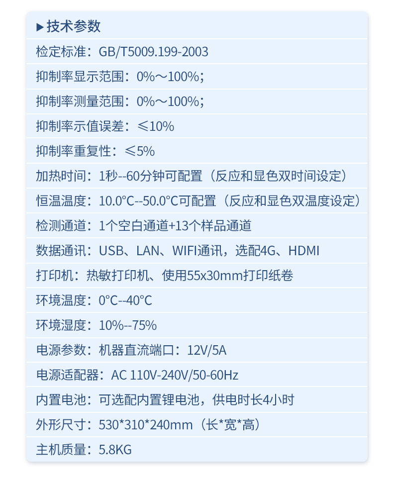 恒溫溫度:10.0℃--50.0℃可配置(反應(yīng)和顯色雙溫度設(shè)定)