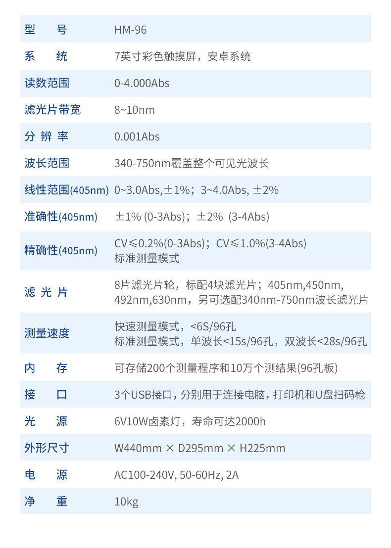 內(nèi)存:可存儲200個測量程序和10萬個測結(jié)果(96孔板)