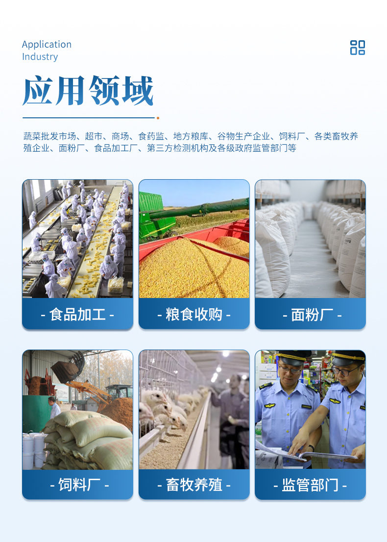 多通道糧食重金屬檢測(cè)儀采用熒光定量快速檢測(cè)原理,主要檢測(cè)糧油谷物飼料中真重金屬鉛和鎘,檢測(cè)樣品涵蓋糧食谷物(大米、玉米、小麥、大麥、高粱等)及其制品、飼料及其原料、食用油脂、牛奶及其制品等;樣品前處理簡(jiǎn)單,整個(gè)檢測(cè)過(guò)程檢測(cè)12 min,產(chǎn)品適用于地方糧庫(kù)、谷物生產(chǎn)企業(yè)、飼料廠、各類(lèi)畜牧養(yǎng)殖企業(yè)、面粉廠、食品加工廠、第三方檢測(cè)機(jī)構(gòu)及各級(jí)政府監(jiān)管部門(mén);