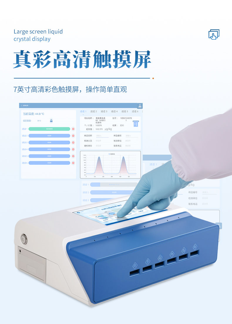 7、內(nèi)置曲線:儀器出廠內(nèi)置定量標(biāo)準(zhǔn)曲線,檢測(cè)過(guò)程中無(wú)需使用標(biāo)準(zhǔn)品重做曲線,節(jié)省檢測(cè)成本,也避免了操作人員與真菌毒素的接觸,保護(hù)操作人員的安全;