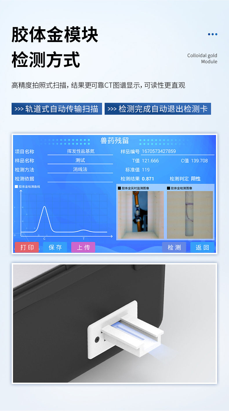 7、膠體金模塊檢測方式:軌道式自動傳輸掃描,檢測完成后自動退出檢測卡。