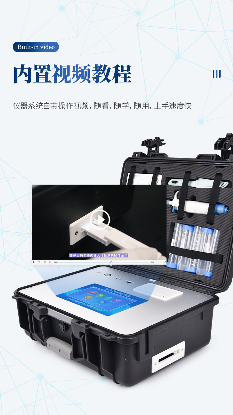6、一體化便攜式快檢設(shè)備,滿足現(xiàn)場(chǎng)及流動(dòng)檢測(cè)使用需求,能夠在同一軟件下實(shí)現(xiàn)所有檢測(cè)項(xiàng)目的檢測(cè),并可通過同一窗口直觀顯示檢測(cè)結(jié)果。