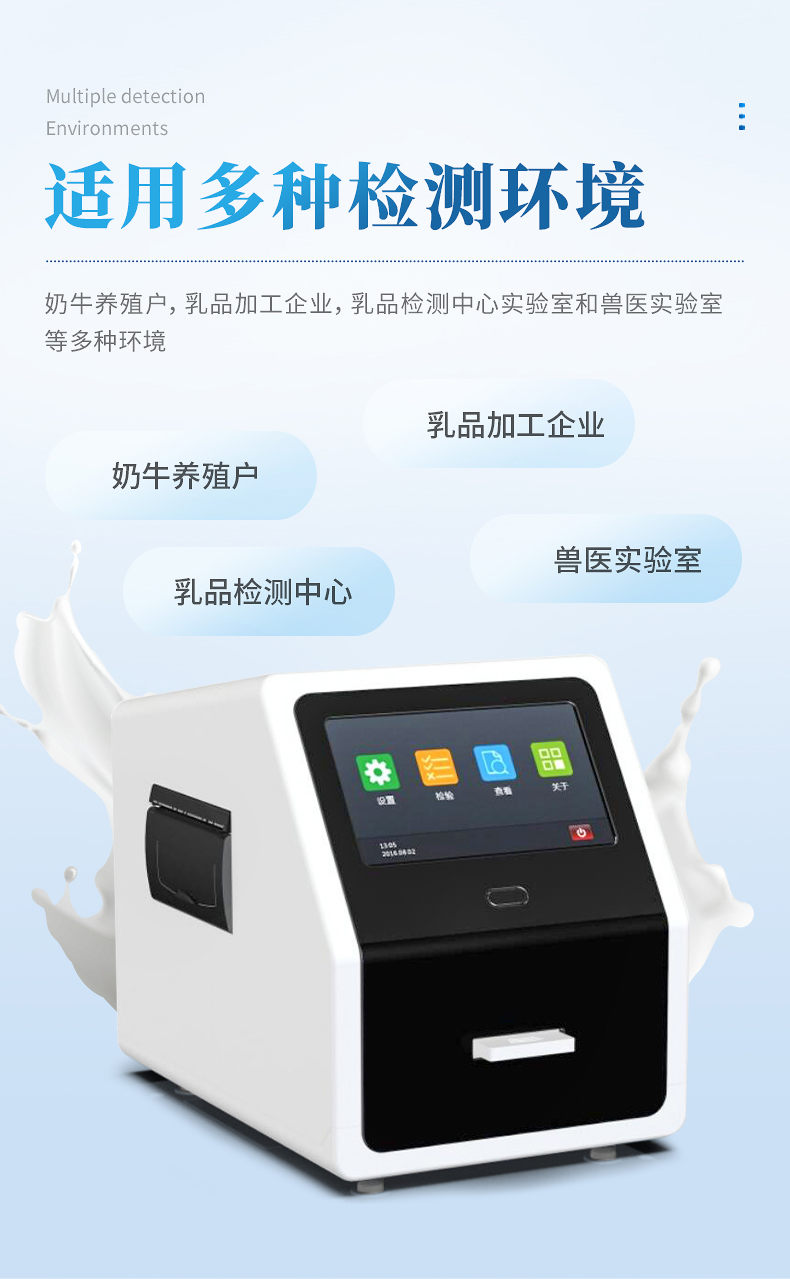 適用多種檢測(cè)環(huán)境:奶牛養(yǎng)殖戶,乳品加工企業(yè),乳品檢測(cè)中心實(shí)驗(yàn)室和獸醫(yī)實(shí)驗(yàn)室等多種環(huán)境。