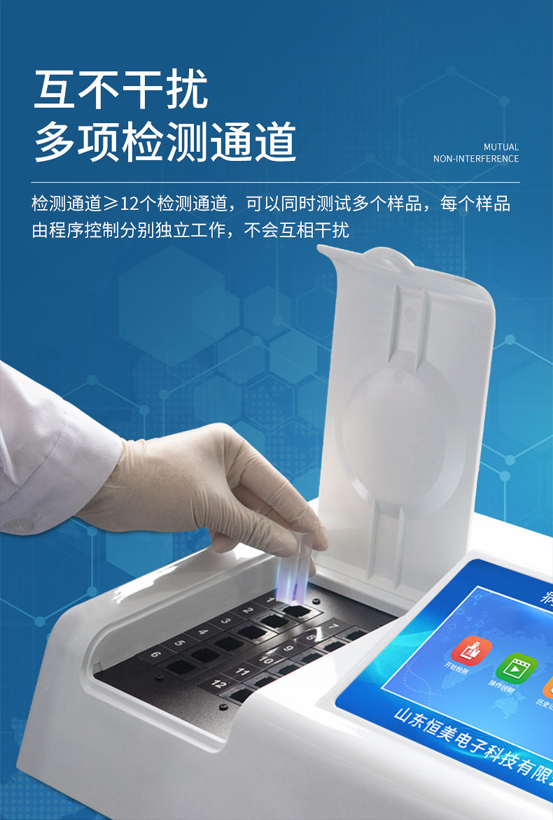 9、儀器具有品類(lèi)多種類(lèi)樣品菜單庫(kù),可靈活選擇檢測(cè)樣品,不同的檢測(cè)通道可同時(shí)檢測(cè)不同的樣品項(xiàng)目。