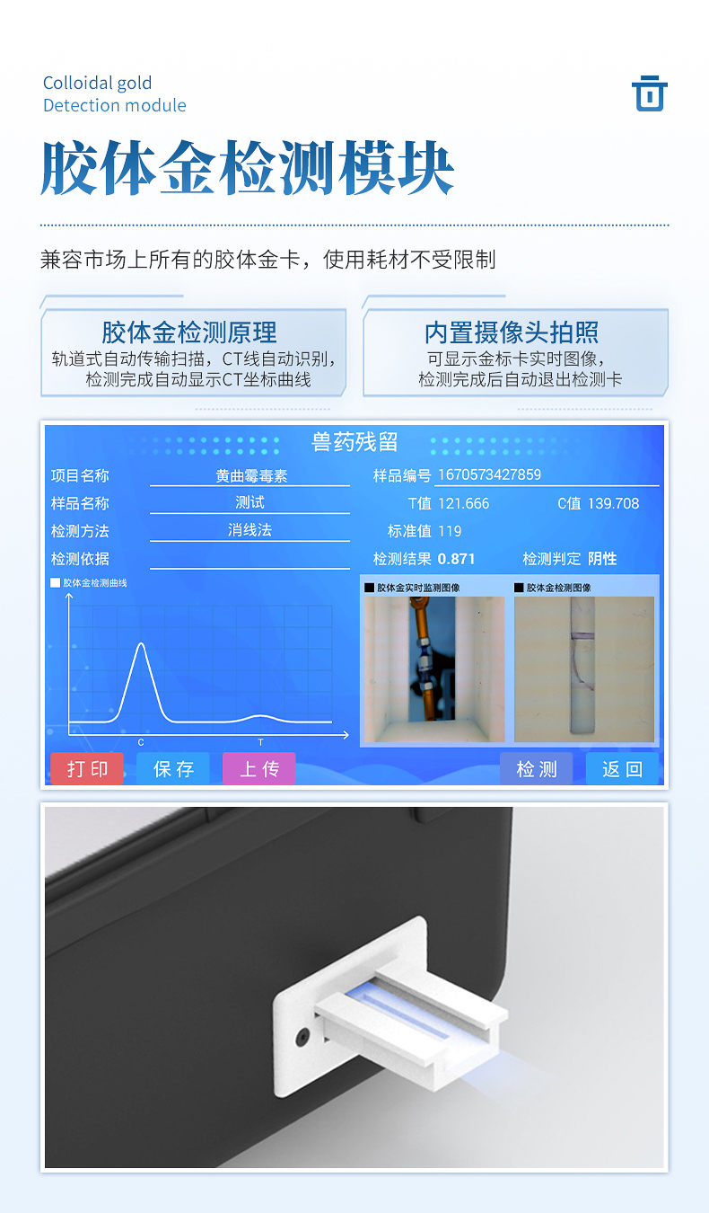 7、膠體金模塊檢測(cè)方式:軌道式自動(dòng)傳輸掃描,檢測(cè)完成后自動(dòng)退出檢測(cè)卡。