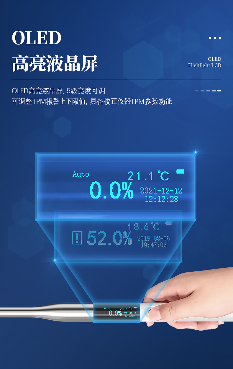 顯示方式:OLED高亮液晶屏,5級亮度可調(diào)。