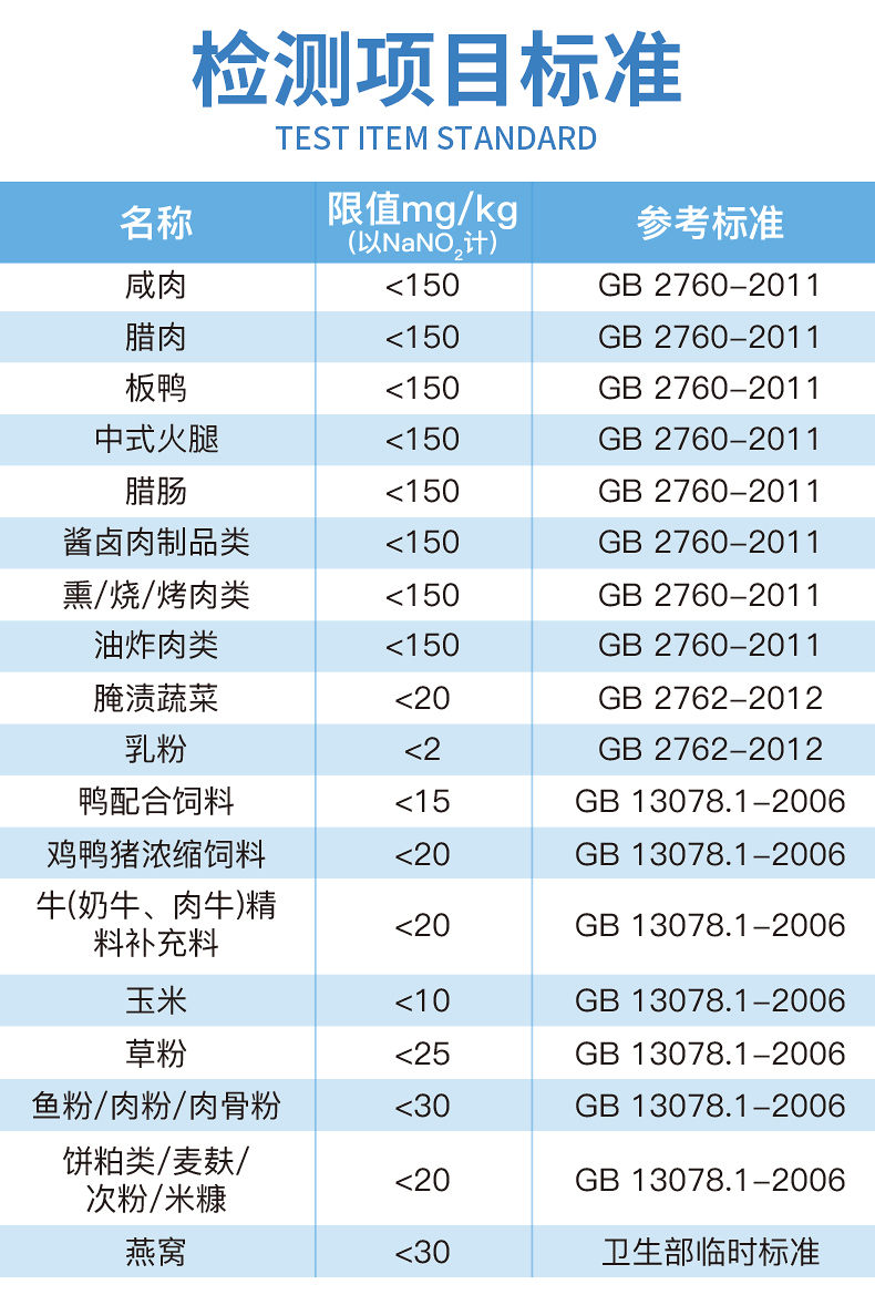 2、亞硝酸鹽線性范圍:1-500mg/kg