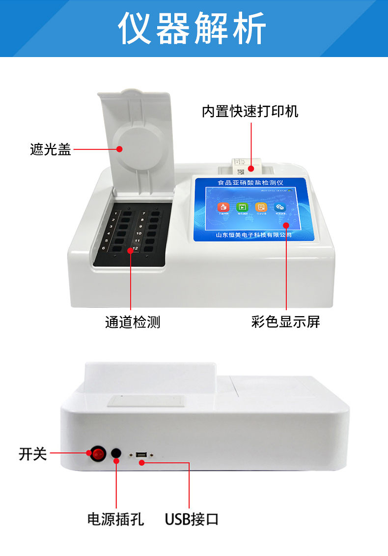 HM-Y12食品中亞硝酸鹽檢測儀器為集成化食品安全檢測分析設(shè)備,能夠快速檢測肉類、肉類罐頭、熏肉、香腸、奶制品、泡菜、腌制蔬菜等中的亞硝酸鹽含量;該儀器是根據(jù)GB5009.33-2010《食品中亞硝酸鹽與硝酸鹽的測定》,食品中的亞硝酸鹽經(jīng)過提取,與檢測試劑反應生成有色化合物,再利用亞硝酸鹽檢測儀測定其吸光度,在一定范圍內(nèi)吸光度與含量成正比。通過檢測可確定食品是否符合國家標準或是否為超標毒害食品等。儀器預留其他項目檢測程序和端口,根據(jù)日后需求可方便的自主增加檢測項目。日后可升級為檢測水產(chǎn)品、面制品的綜合類型儀器。