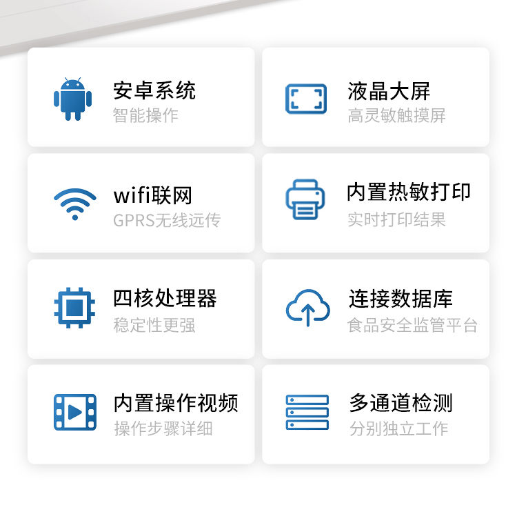 7、具有多個(gè)食品安全檢測項(xiàng)目,開放平臺(tái),可以增減檢測項(xiàng)目。