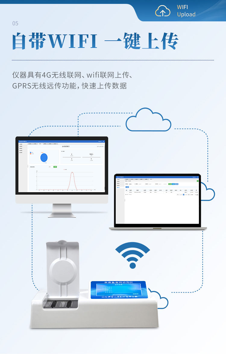 3、儀器具有4G無線聯(lián)網(wǎng)、wifi聯(lián)網(wǎng)上傳、GPRS無線遠(yuǎn)傳功能,快速上傳數(shù)據(jù)。