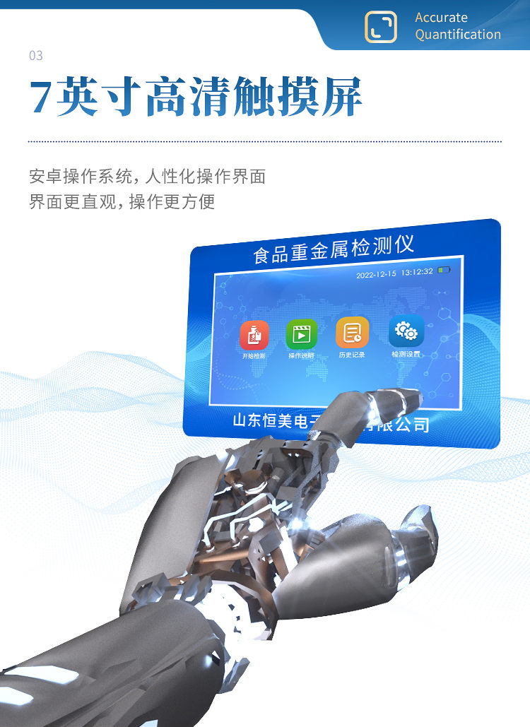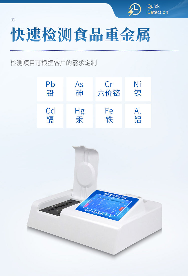 TZ03重金屬檢測儀可廣泛應(yīng)用于大米、糧谷、果品、蔬菜、藥材、水質(zhì)、水產(chǎn)品中重金屬鉛、鎘、六價(jià)鉻、汞、砷、鐵、鎳、鋁(任選三項(xiàng))的快速檢測,檢測項(xiàng)目可根據(jù)客戶的需求定制。