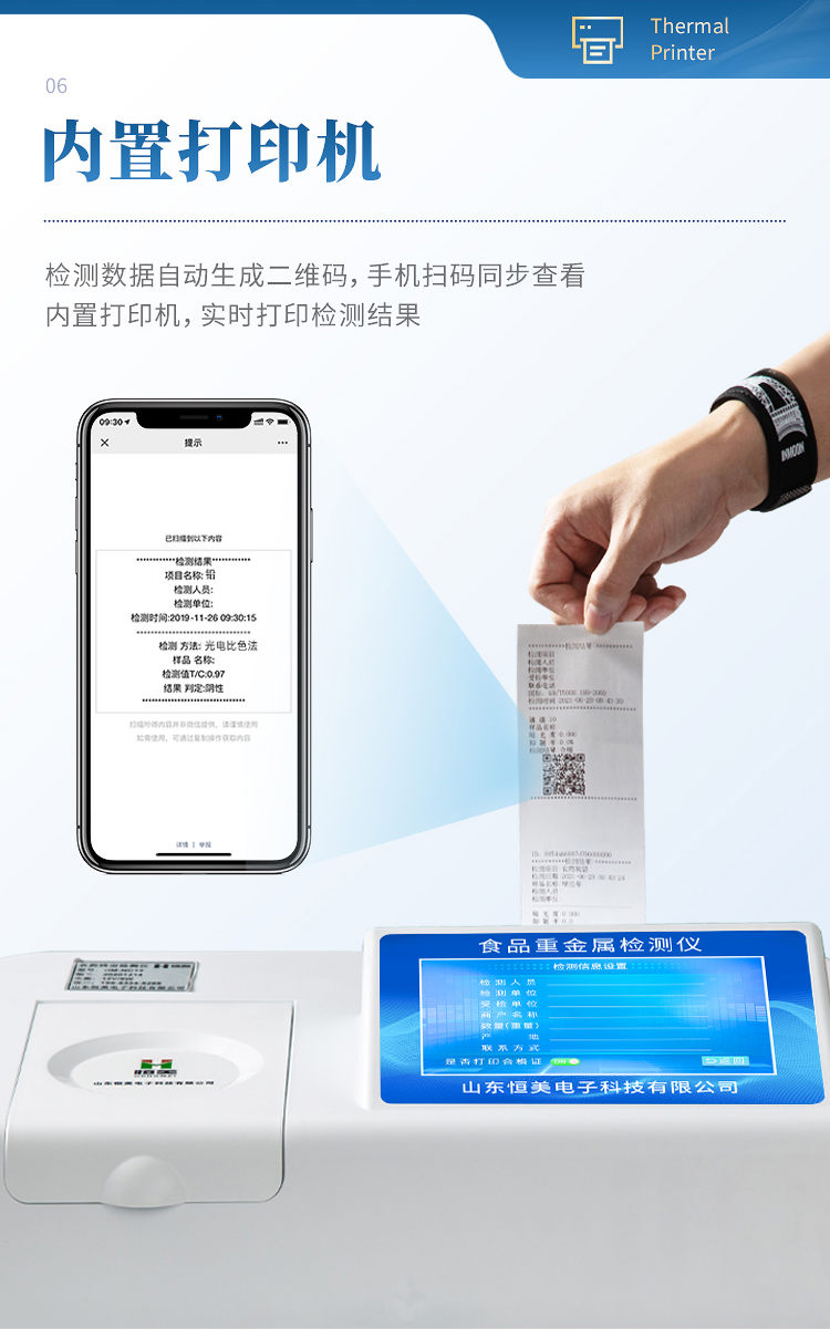 11、內(nèi)置打印機(jī),實(shí)時(shí)打印檢測結(jié)果。內(nèi)置大容量電池,便于現(xiàn)場執(zhí)法檢測。